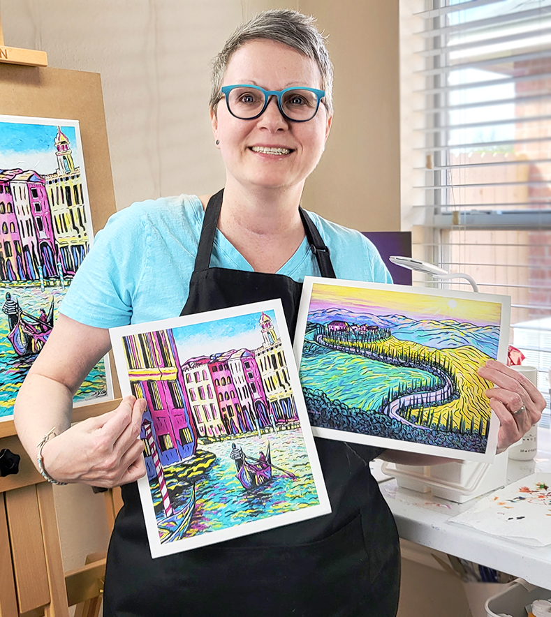 I've been creative all of my life but I got away from painting to pursue other jobs and passions in my life, mainly traveling full time, which had been a dream of mine for a long time and became a reality in 2018. Then, COVID struck, and I was "stuck" and no longer able to travel. But out of that, I was given a gift ... the time to paint. And because I could no longer travel, I began to paint pieces that transported me out of COVID and into a happy place. Travel and nature have always taken me to a place of happiness and joy and those are the subjects I most often paint.